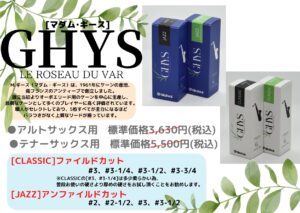 クラリネット リードで大好評の「M.ギース」より アルトサックス 用と テナーサックス 用が発売されました!